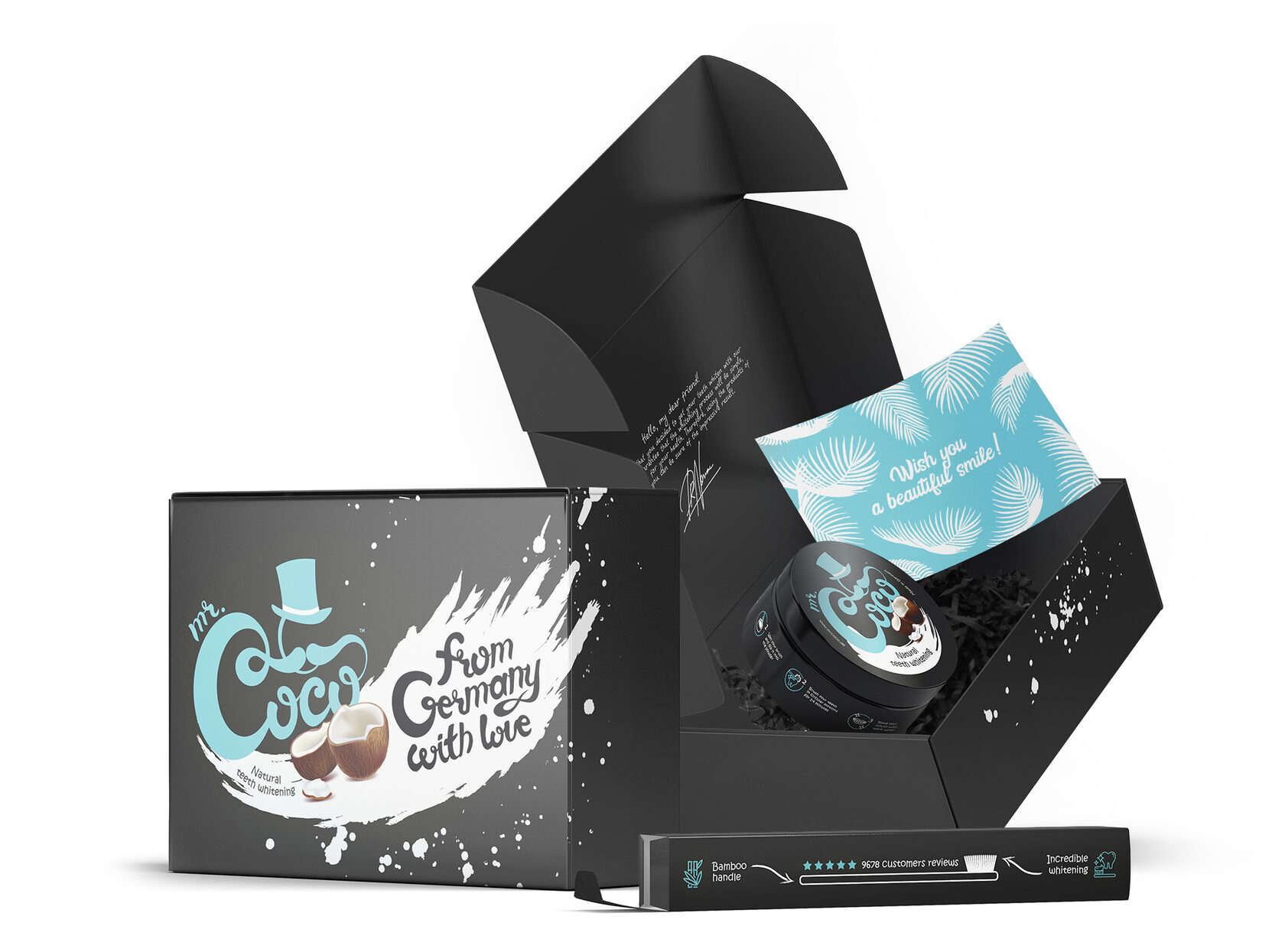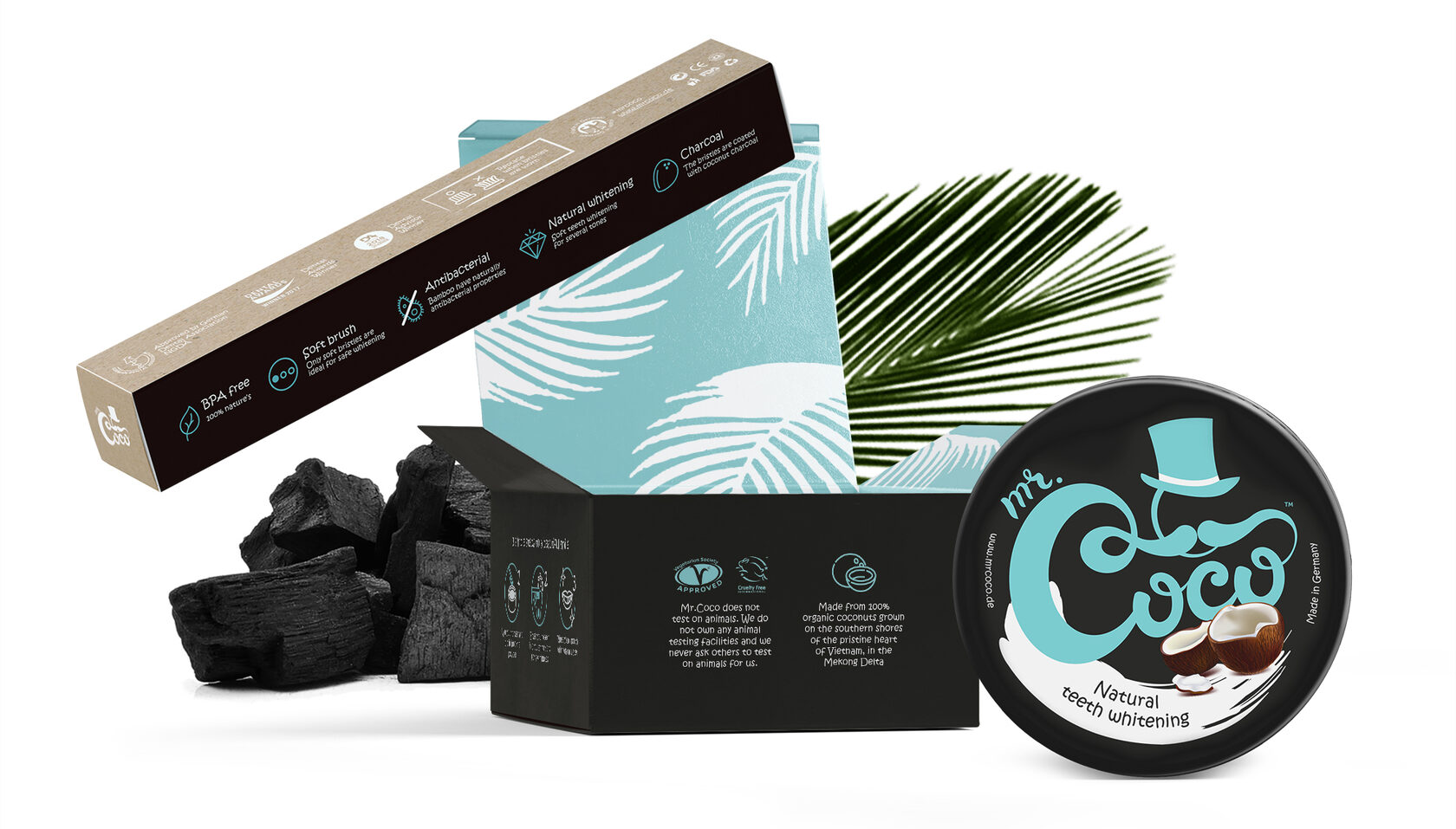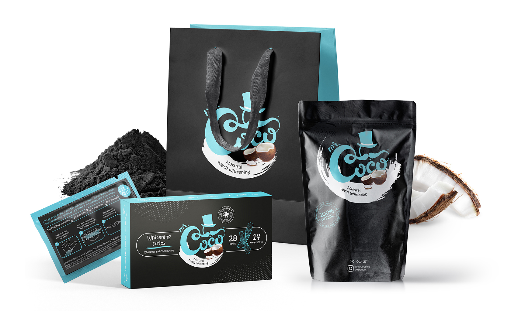 Логотип и упаковки для серии отбеливающей продукции Mr. Coco