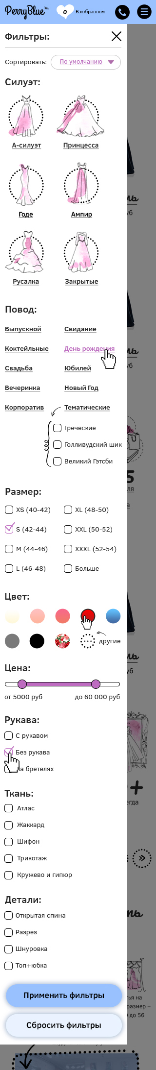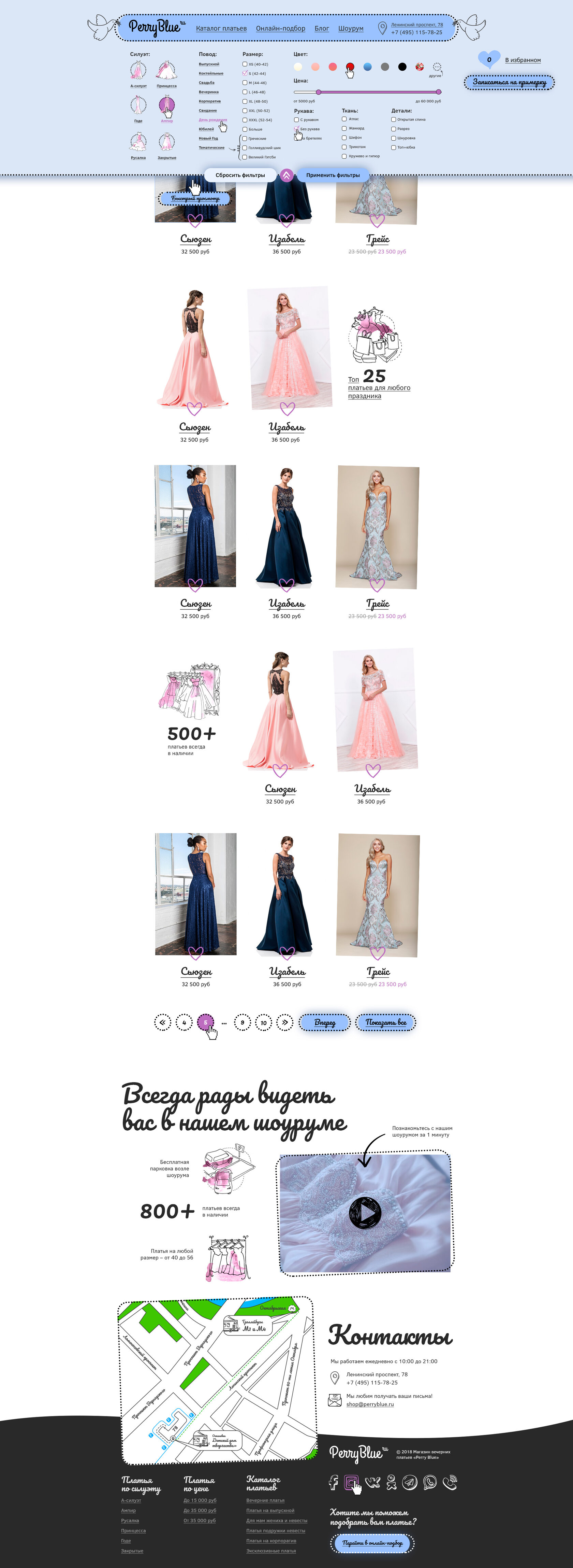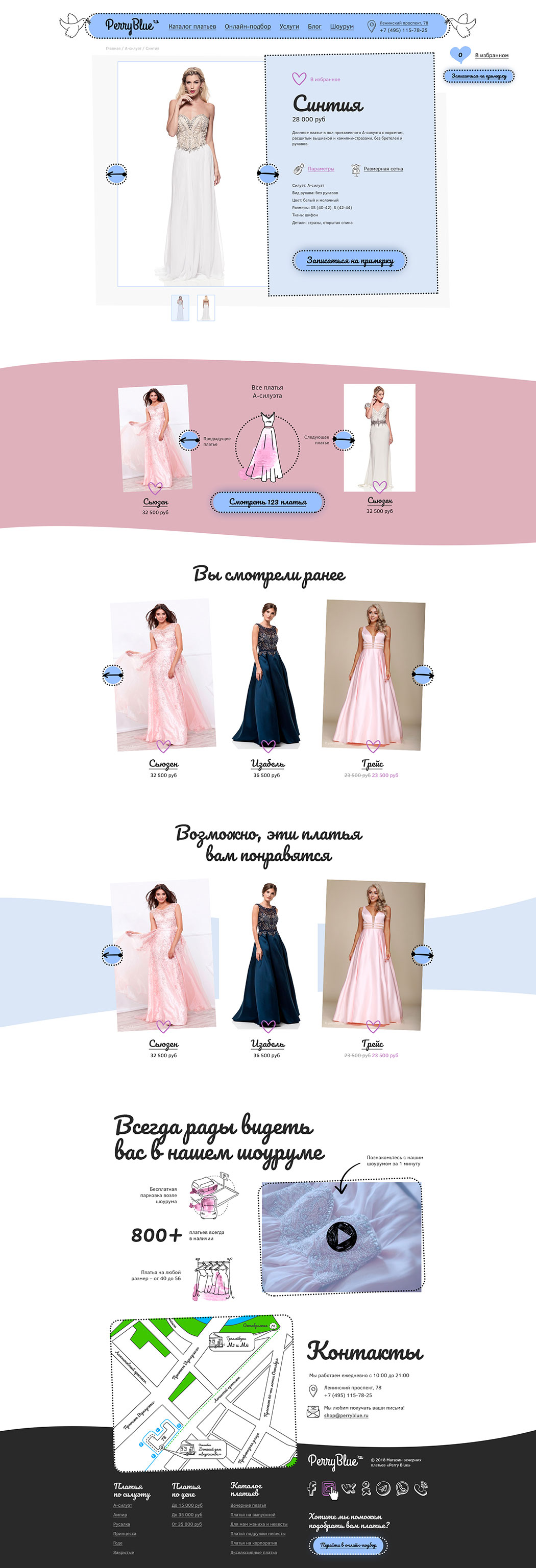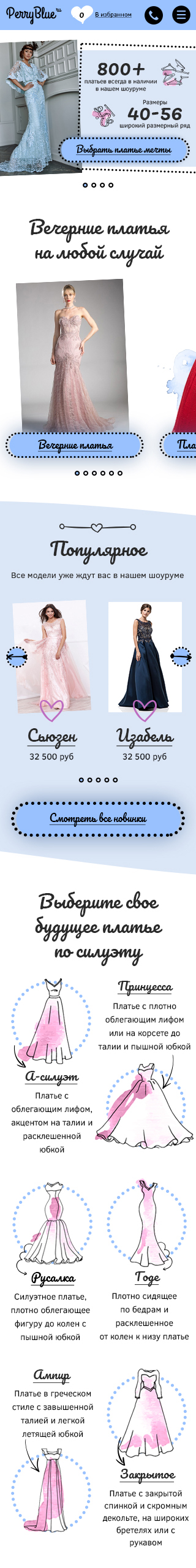 Дизайн интернет-магазина вечерних платьев Perry Blue