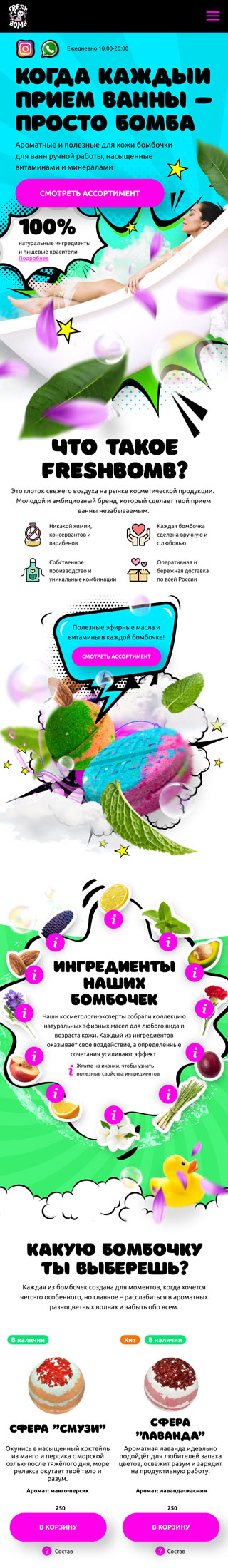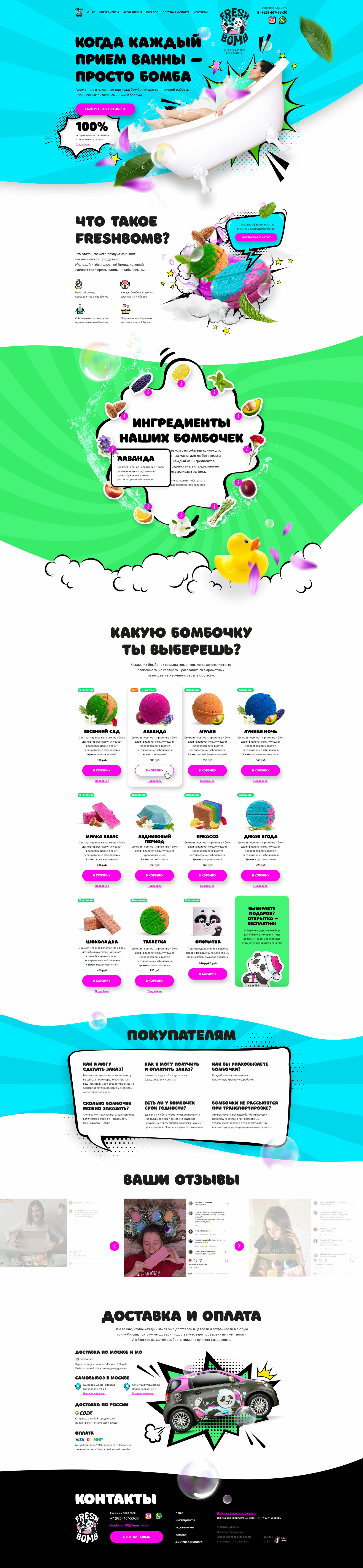 Дизайн логотипа и лендинга Freshbomb, производителя бомбочек для ванн