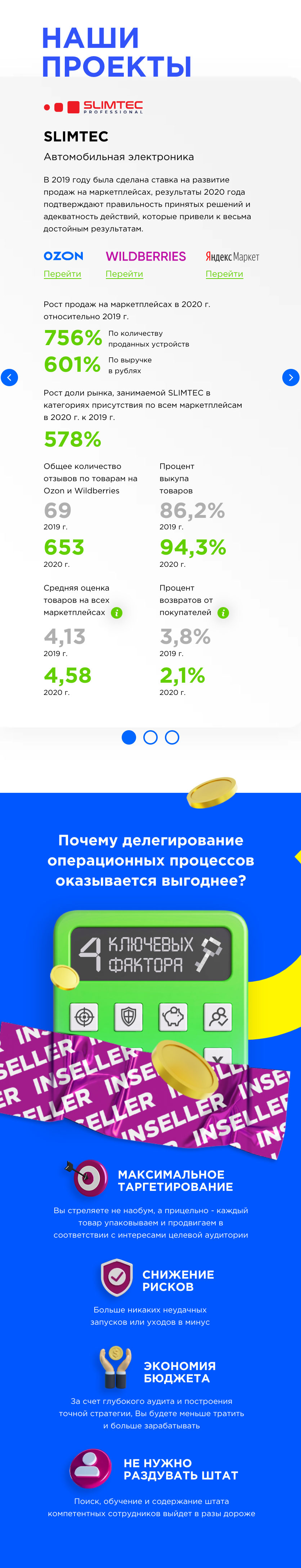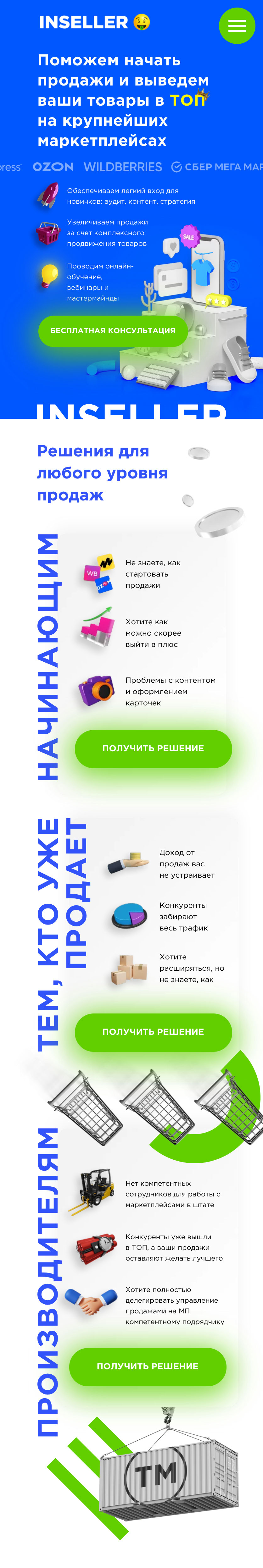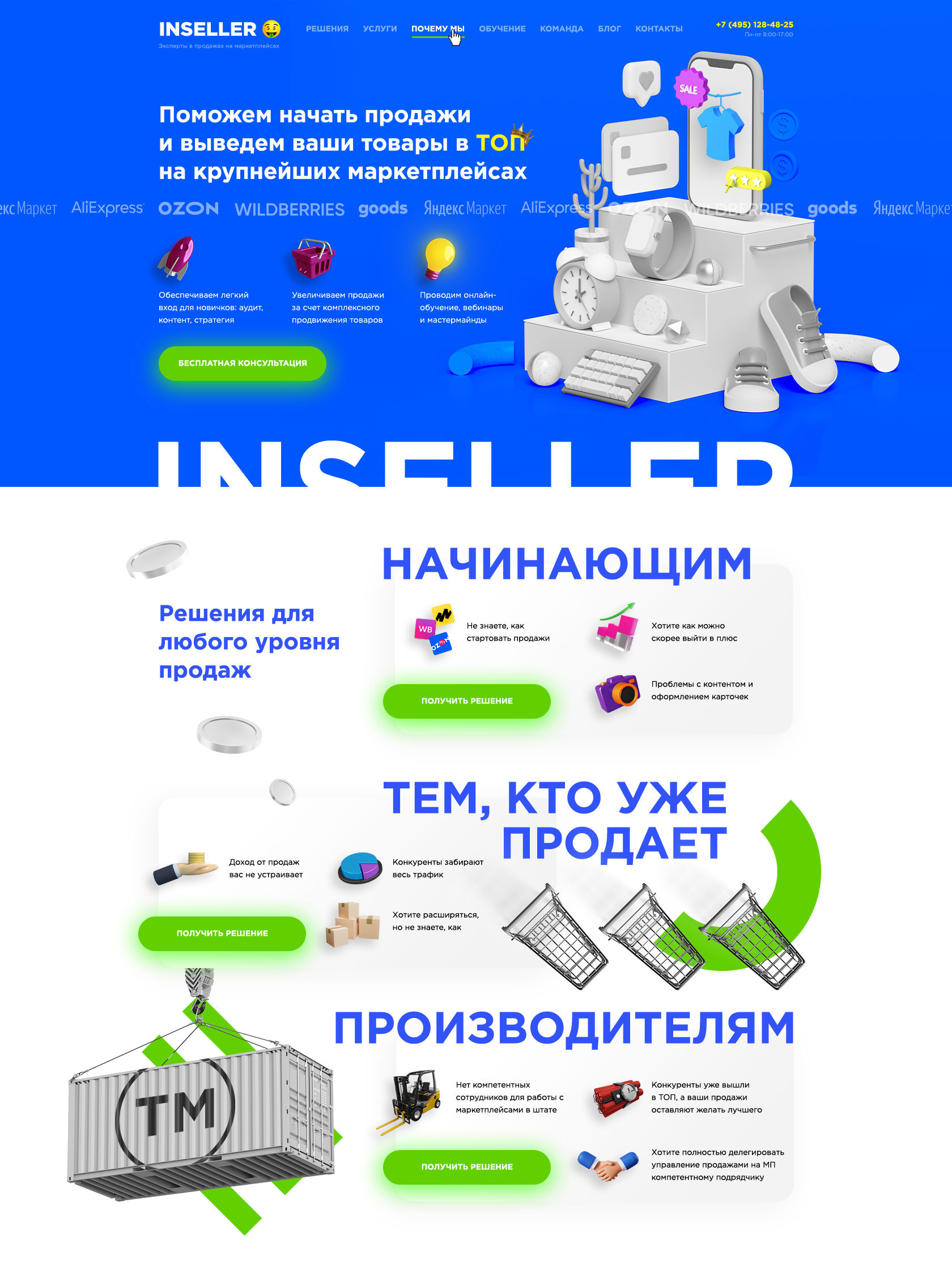 Дизайн лендинга Inseller - помощника продаж на маркетплейсах