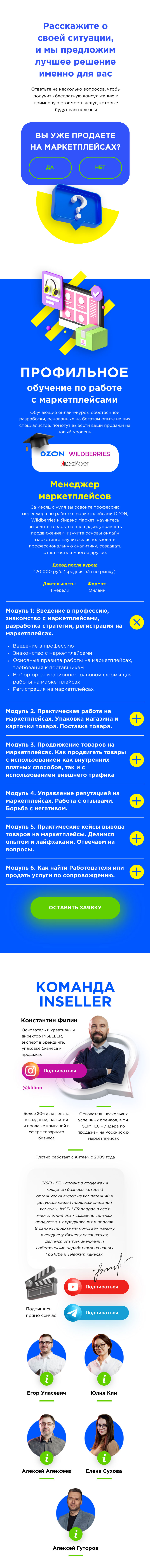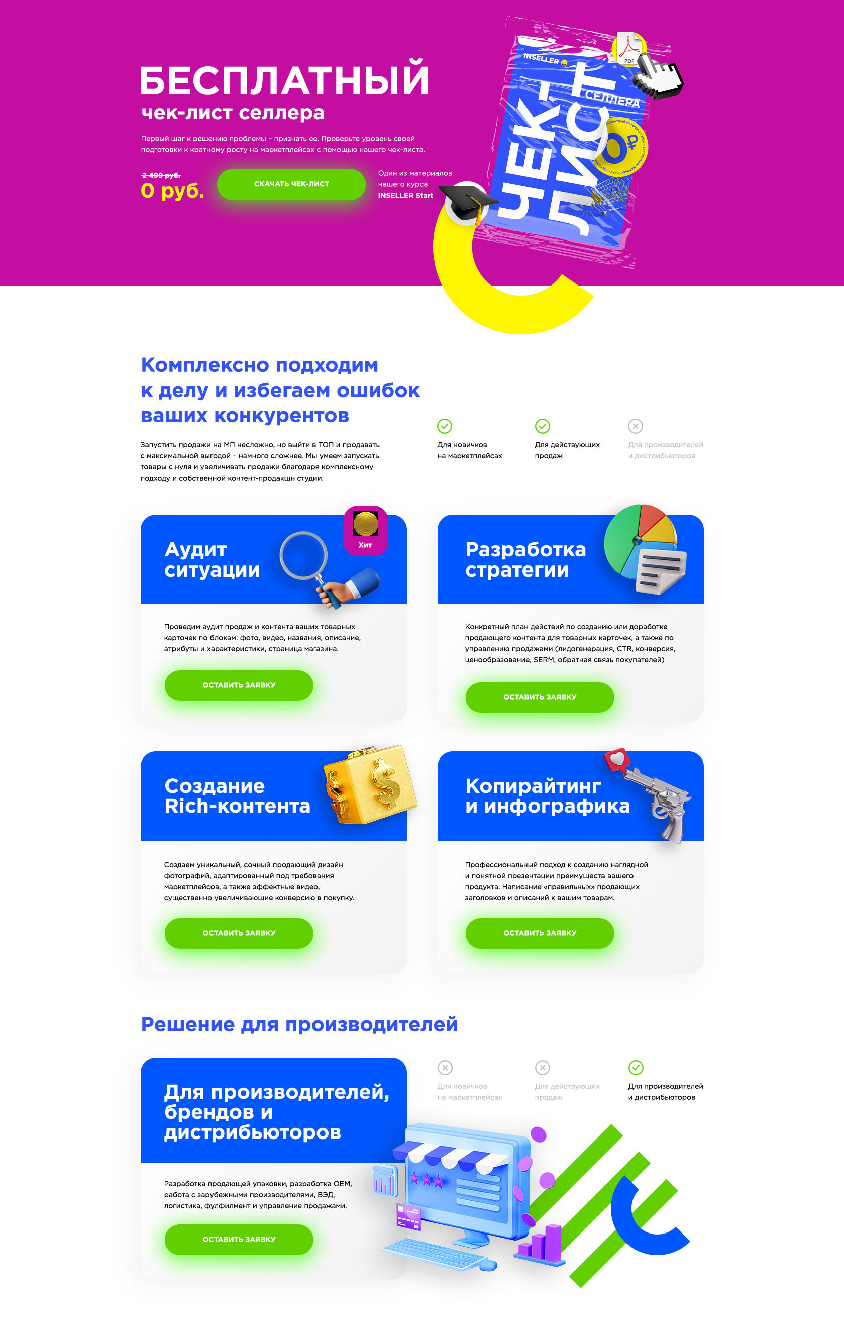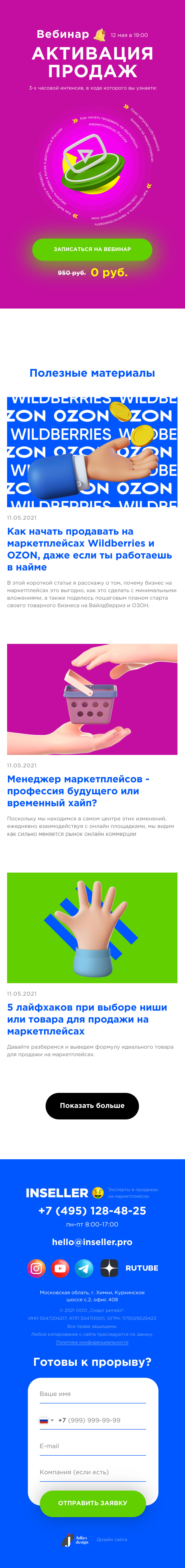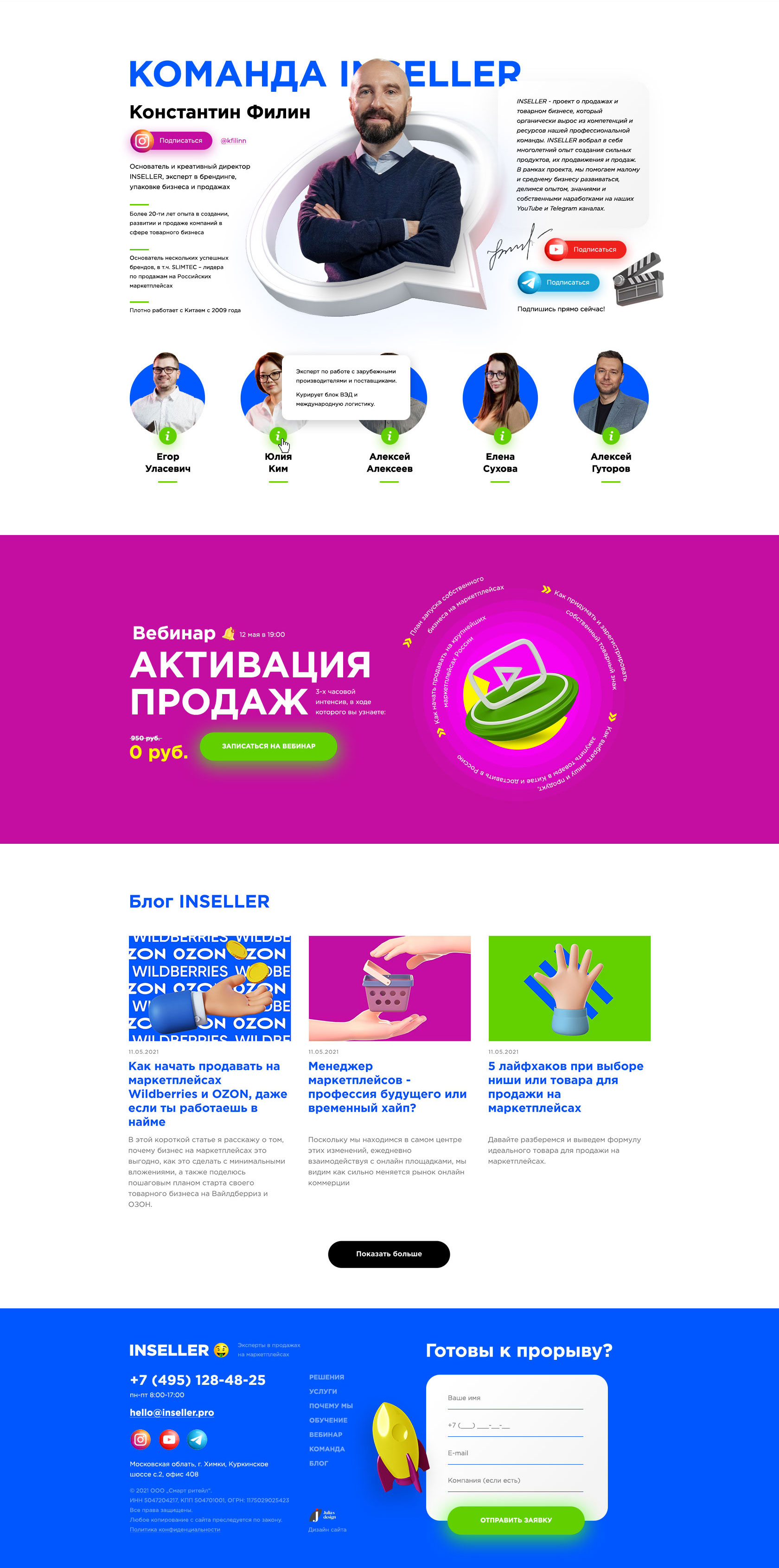 Дизайн лендинга Inseller - помощника продаж на маркетплейсах