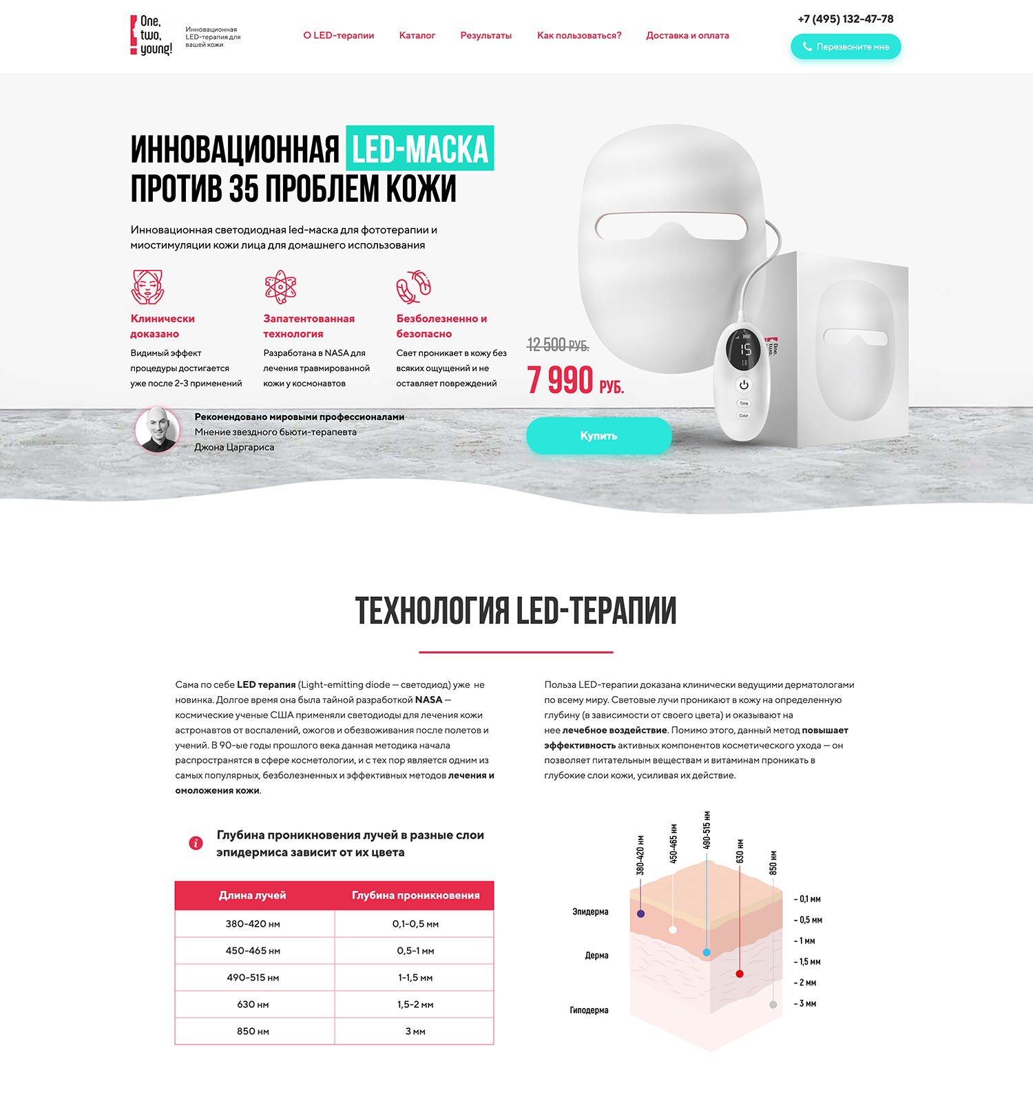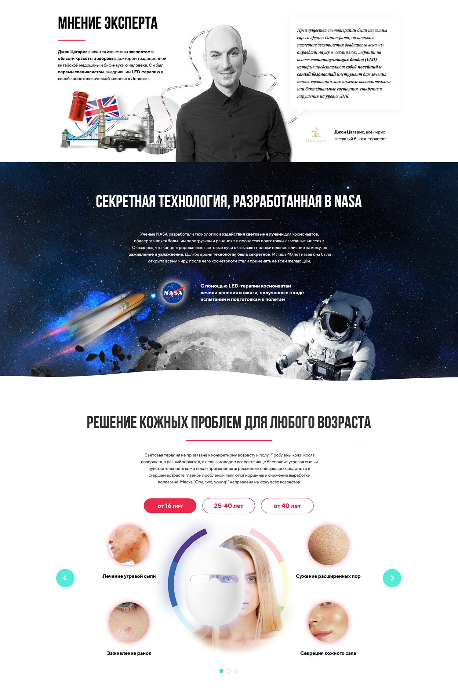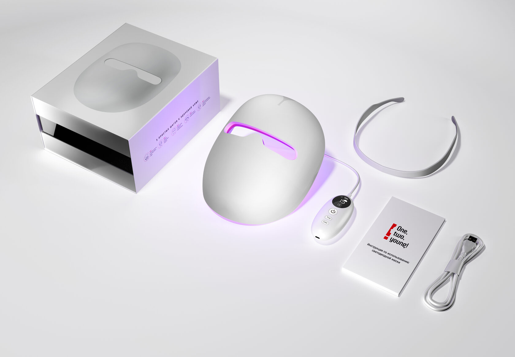 Дизайн логотипа, упаковки и лендинга для светодиодной маски One, two, young!