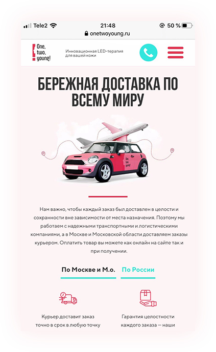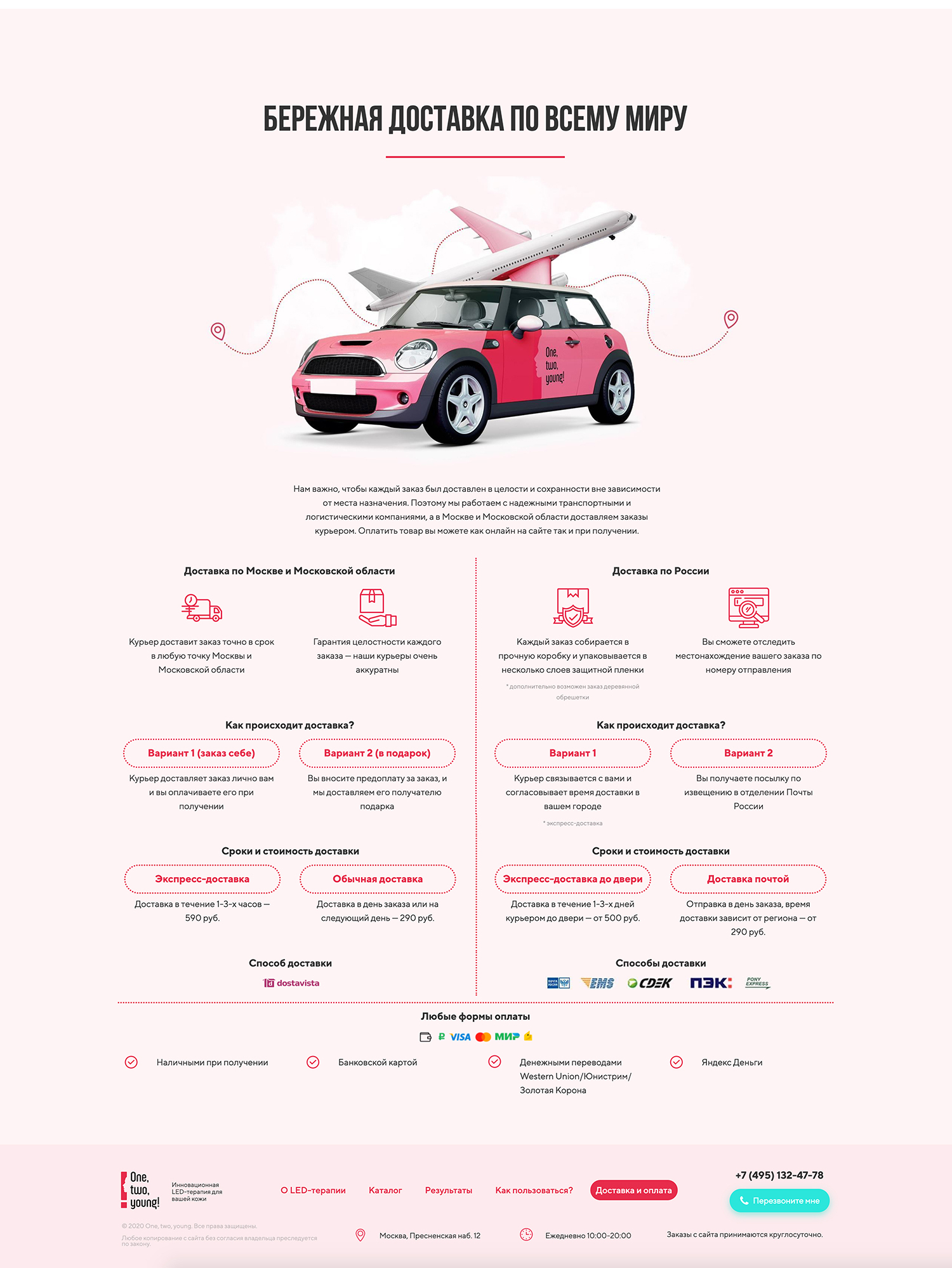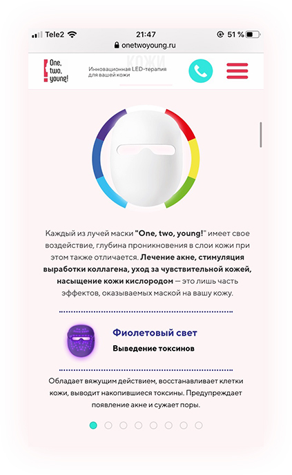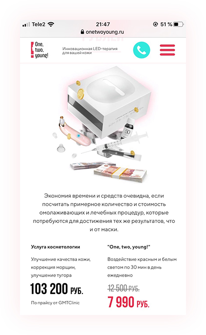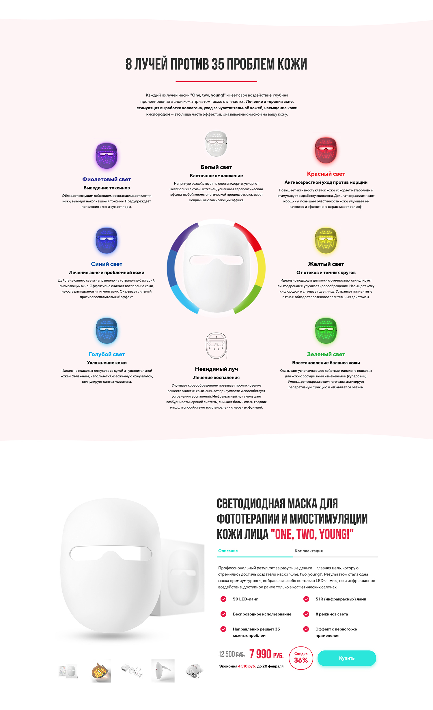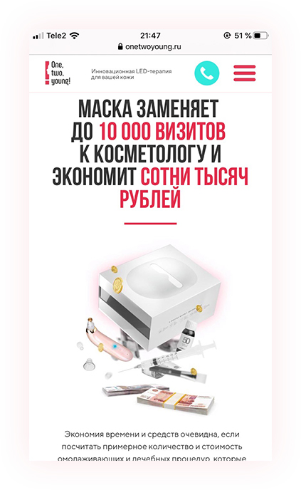 Дизайн логотипа, упаковки и лендинга для светодиодной маски One, two, young!
